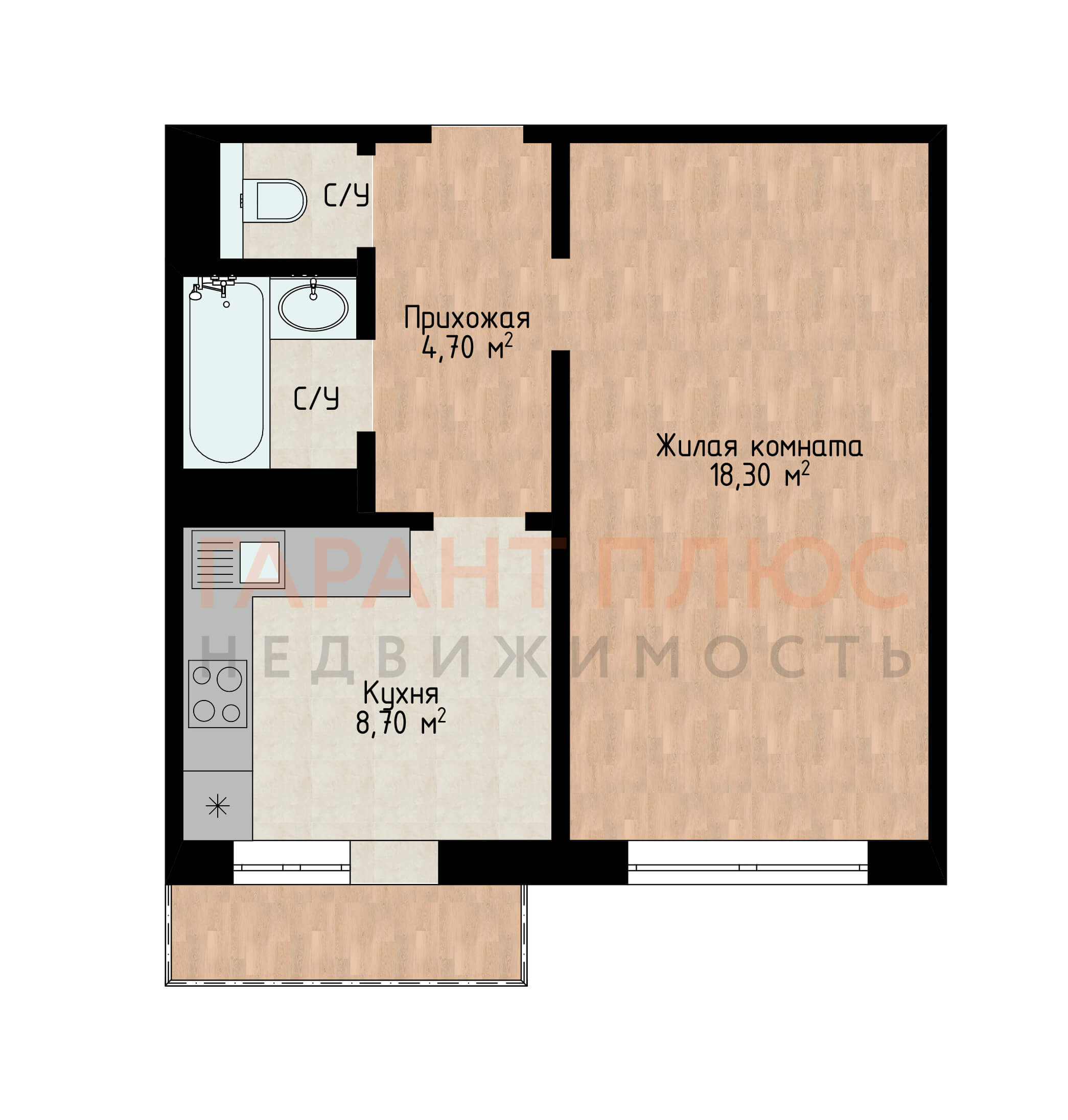 1 комн.35-37 кв.м.